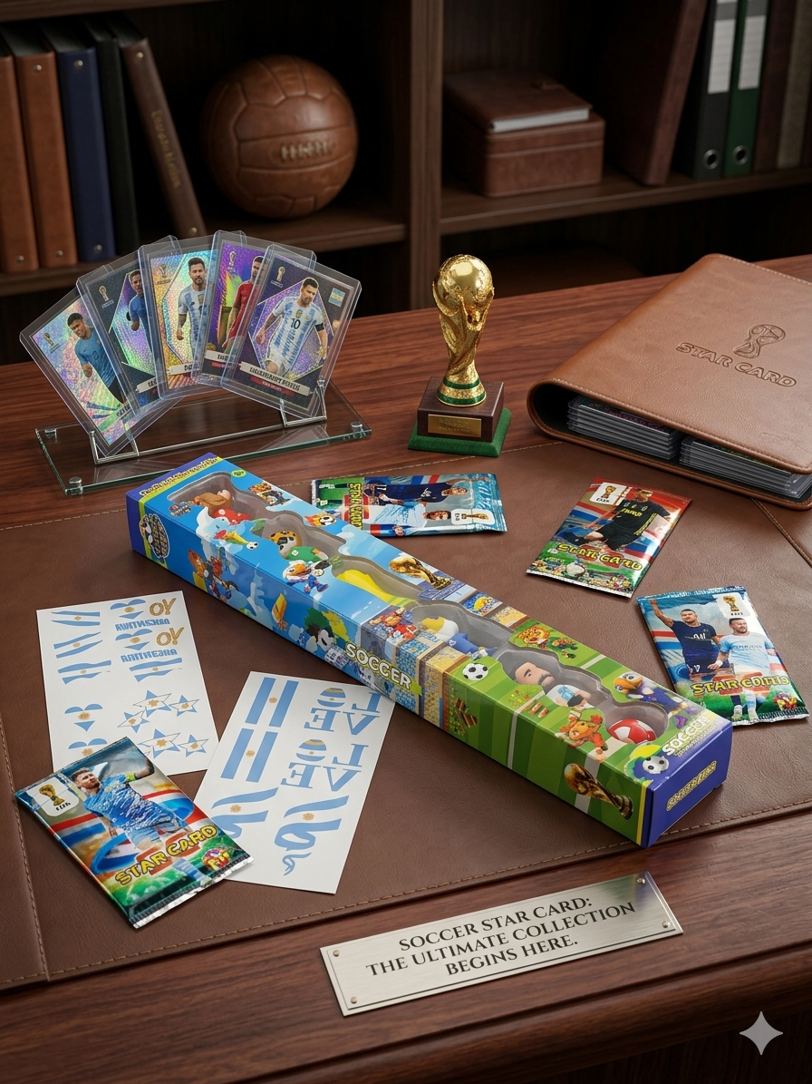 • 5 Paquetes de Cartas Coleccionables: La adrenalina de abrir cada sobre y descubrir a tus ídolos. ¡Perfectas para intercambiar y armar los mejores desafíos de cartas! 🃏⚽