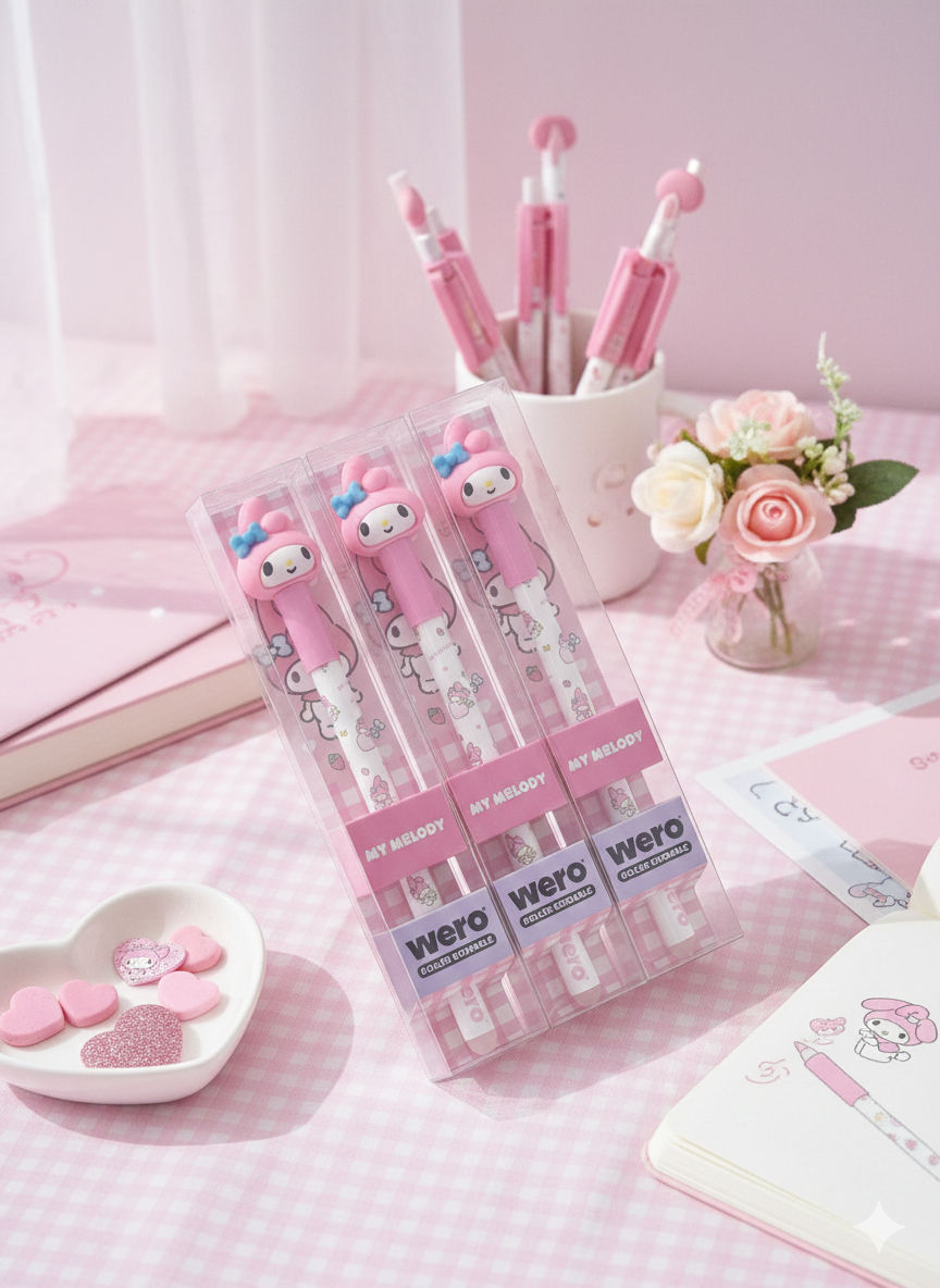 ¡Escribí tus sueños con toda la ternura de My Melody! ✨ Estas lapiceras Wero son el accesorio más tierno para tu colección de Sanrio. Con un trazo súper suave y el diseño icónico de nuestra conejita favorita, vas a querer llevarla a todas tus clases. ¡Sumá un toque de rosa a tu rutina! 🐰💖