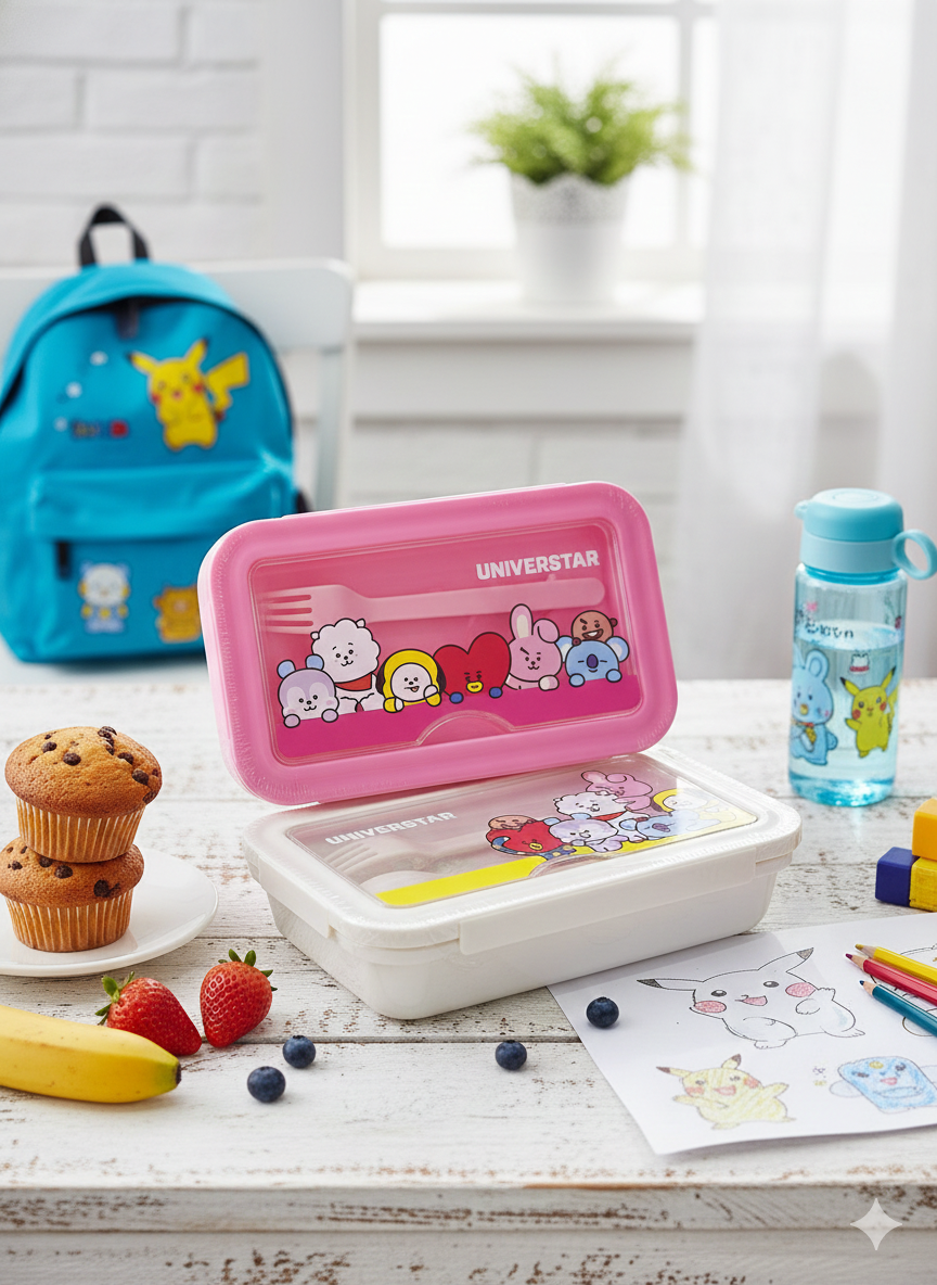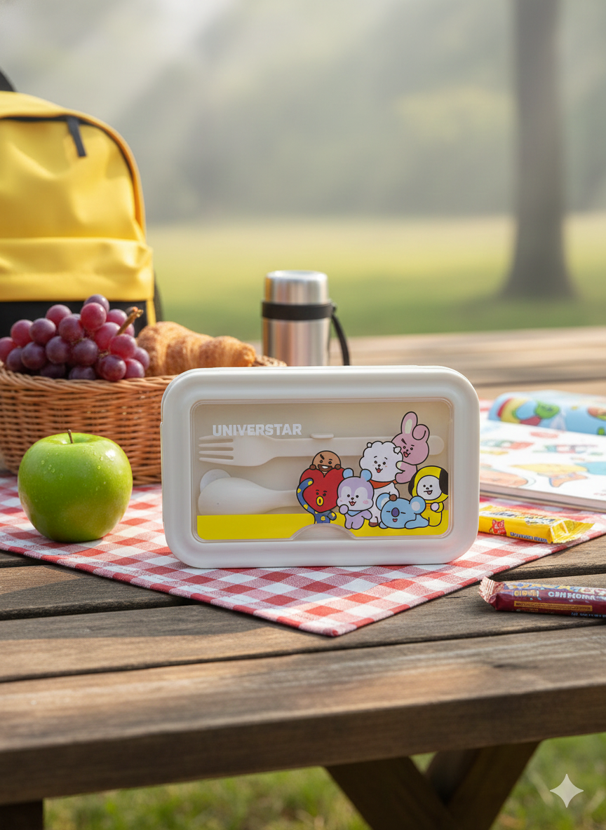 Lo que hace que esta vianda de BTS sea un fuego total es su tapa decorada con todos los personajes icónicos. Es una explosión de color y ternura que va a resaltar en cualquier comedor o picnic. ¡Es el accesorio que toda fan necesita para completar su colección!