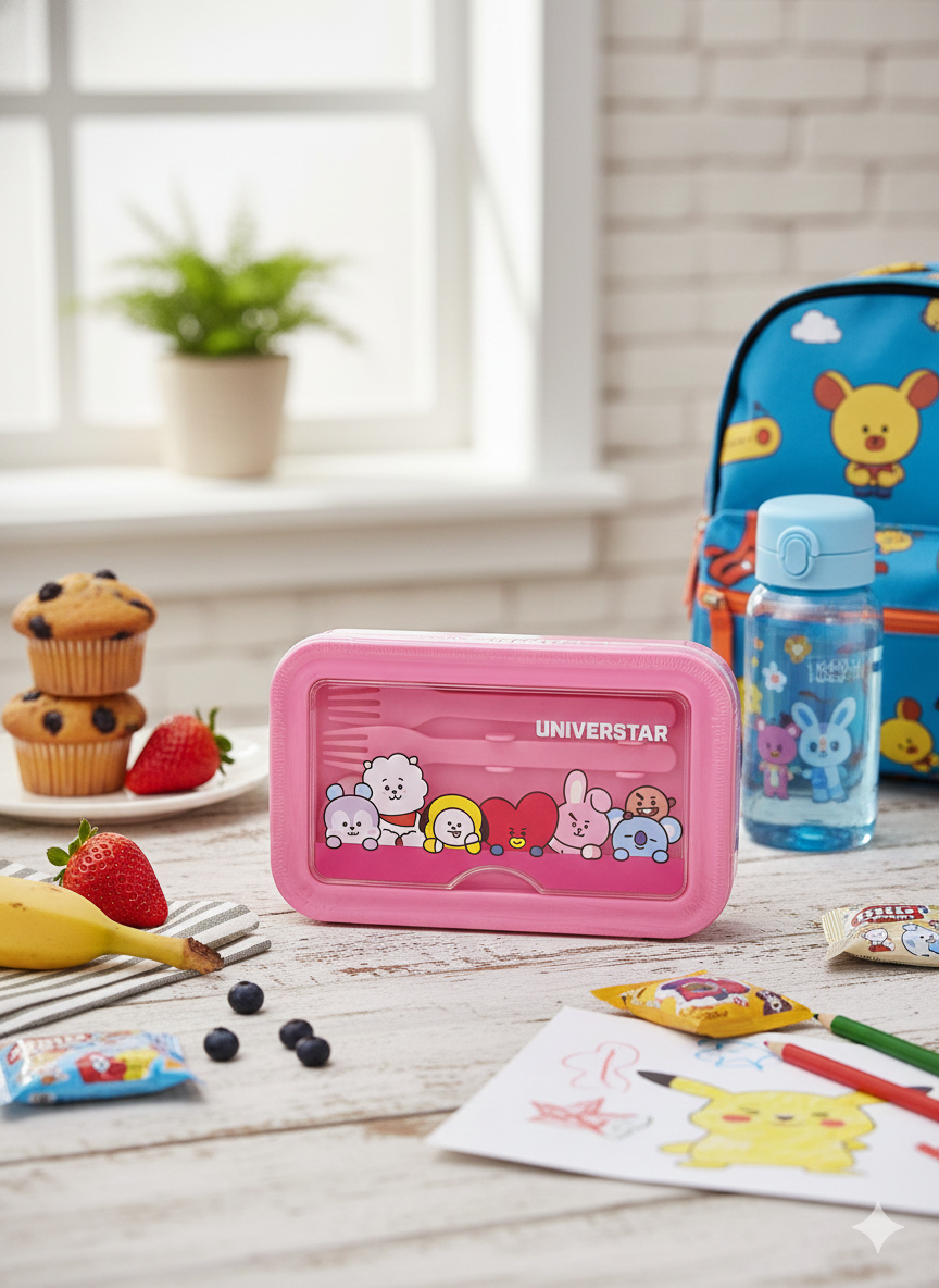 ¿Buscás que tu hora del almuerzo sea el momento más instagrameable del día? 🤳 La Lonchera de BTS con cubiertos llegó para transformar tu rutina. Olvidate de las viandas aburridas y pasate al lado más cool con este set diseñado exclusivamente para quienes llevan el espíritu de Bangtan a todos lados.