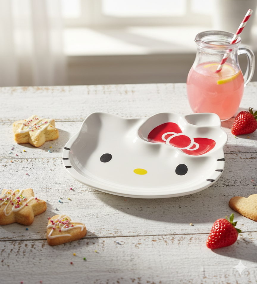 ¡Hello Kitty llega para llenar tu mesa de ternura! Este plato temático combina un diseño dulce y colorido con la calidad y el encanto que caracterizan al universo Sanrio. Perfecto para quienes disfrutan de los pequeños detalles y aman rodearse de cosas lindas. ✨