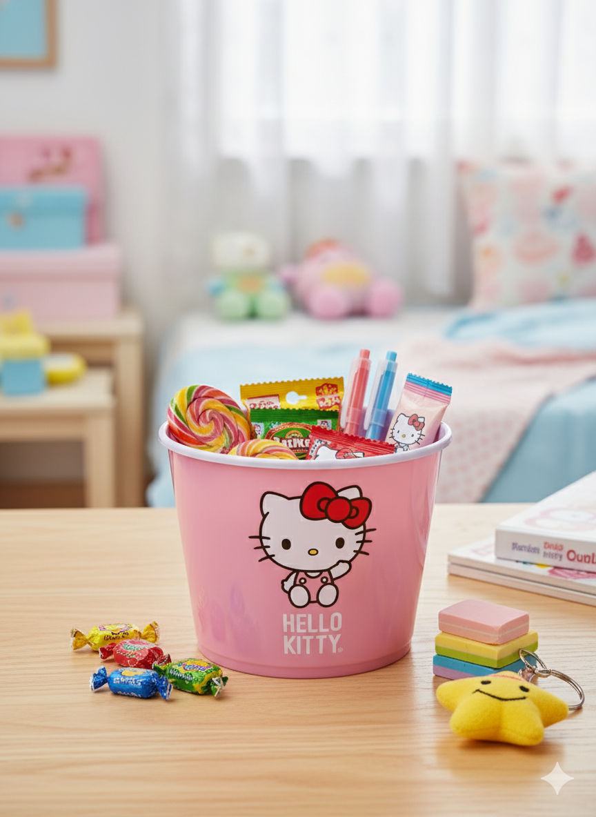 ¡Tardes de peli con estilo kawaii! 🍿🐱Pochoclera Hello Kitty, práctica, linda y perfecta para compartir momentos dulces. 💖✨