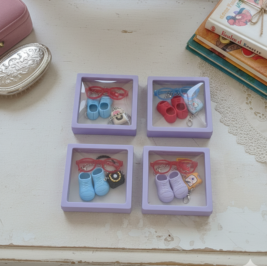 Este adorable set de accesorios incluye lentes, zapatos y una cartera, perfectos para personalizar a tu personaje favorito con un toque único y divertido 😍.