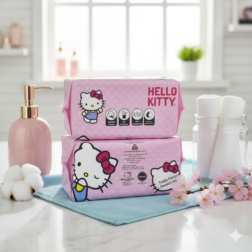 ¡Tu rutina facial ahora es más kawaii! 🎀💦Las toallas faciales de Hello Kitty son suaves, absorbentes y llenas de ternura. 💕